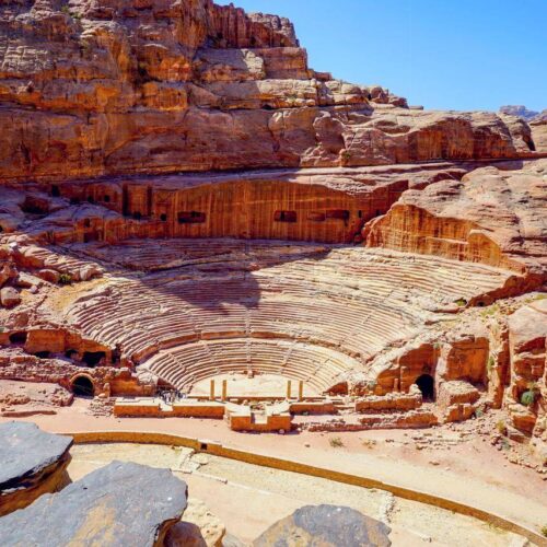 Проехав попустыне Вади-Рам мы увидим каньон Сик. Прогулявшись по нему выйдем к известному храму Аль Хазнэ – древней сокровищнице, визитной карточке Петры. Посмотрим Римский театр, Римскую Византийскую колоннаду. Поднимемся на гору Аль-Хабис, где находится крепость эпохи крестоносев и откуда открывается красивый панорамный вид.